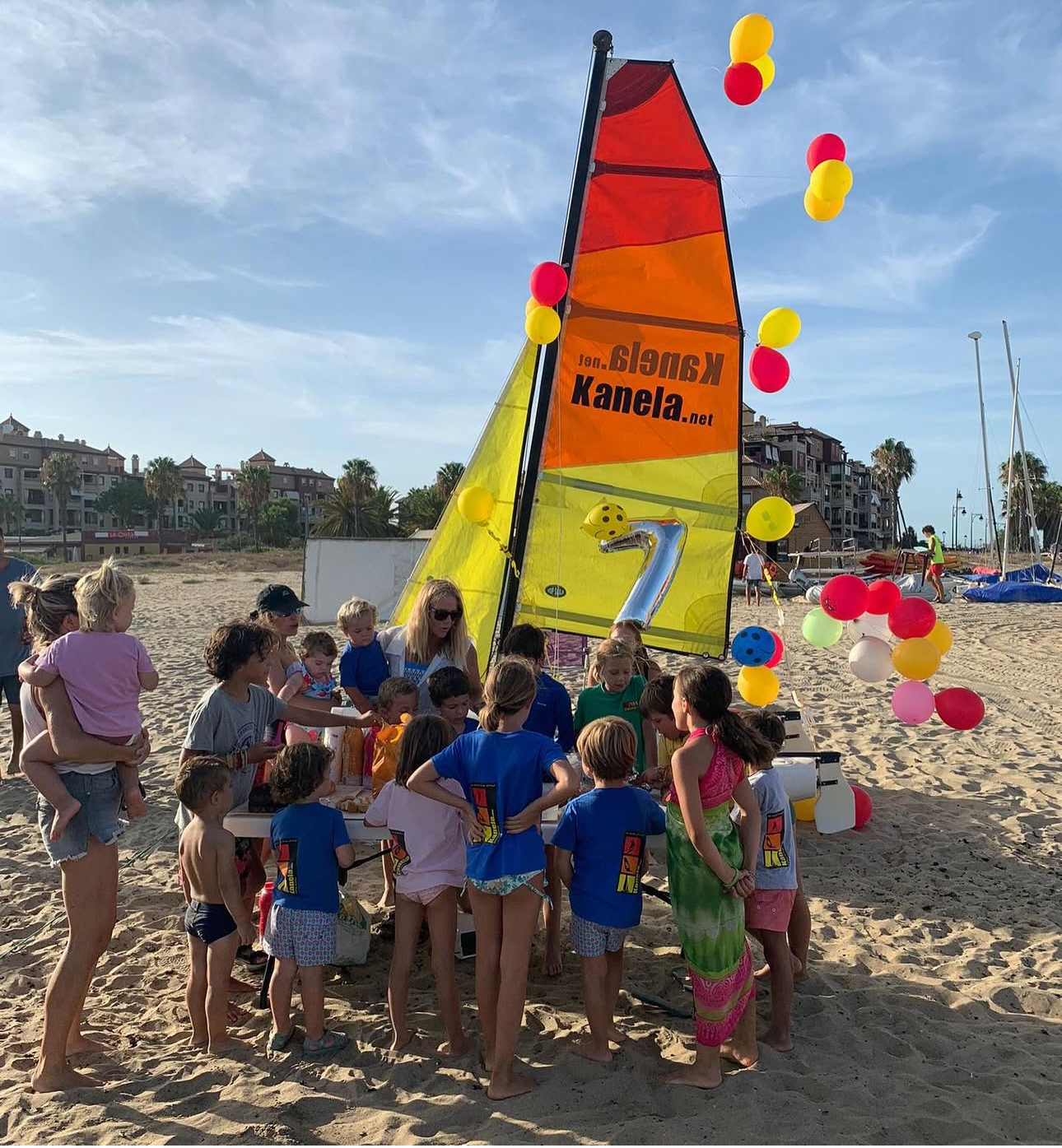 En nuestra escuela de vela el verano se vive en el mar. A lo largo de la temporada organizamos una amplia variedad de actividades náuticas pensadas para disfrutar, aprender y crear recuerdos inolvidables. Regatas, noches escueleras, gymkanas, fiestas náuticas y temáticas, cines de kanela y celebraciones de cumpleaños forman parte de una programación dinámica y divertida.